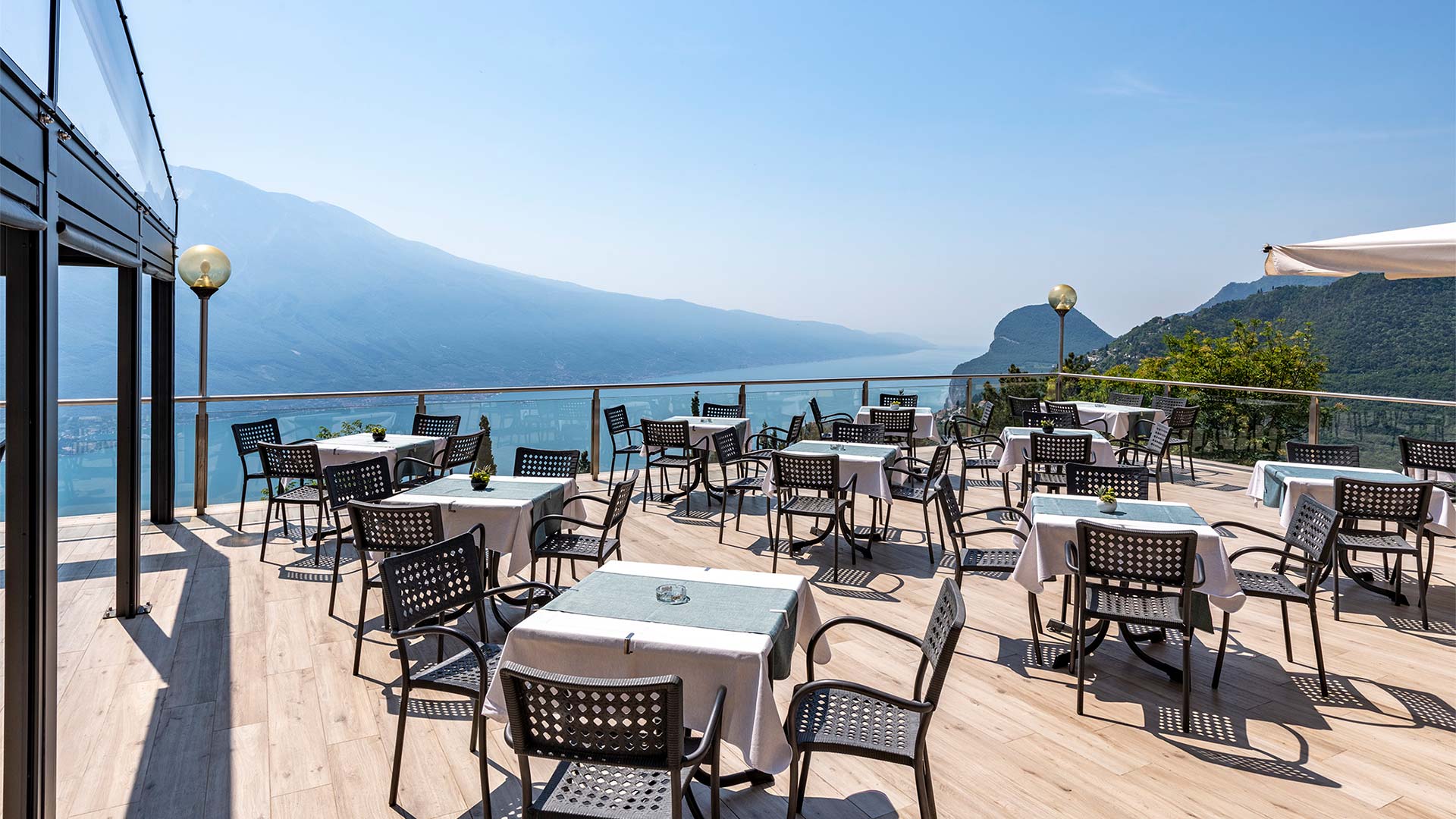 Unsere Gäste können ihren Aufenthalt mit Vollpension oder Halbpension buchen. Wir bieten Frühstücks- und Mittagsservice direkt auf der Terrasse mit Blick auf den Gardasee.