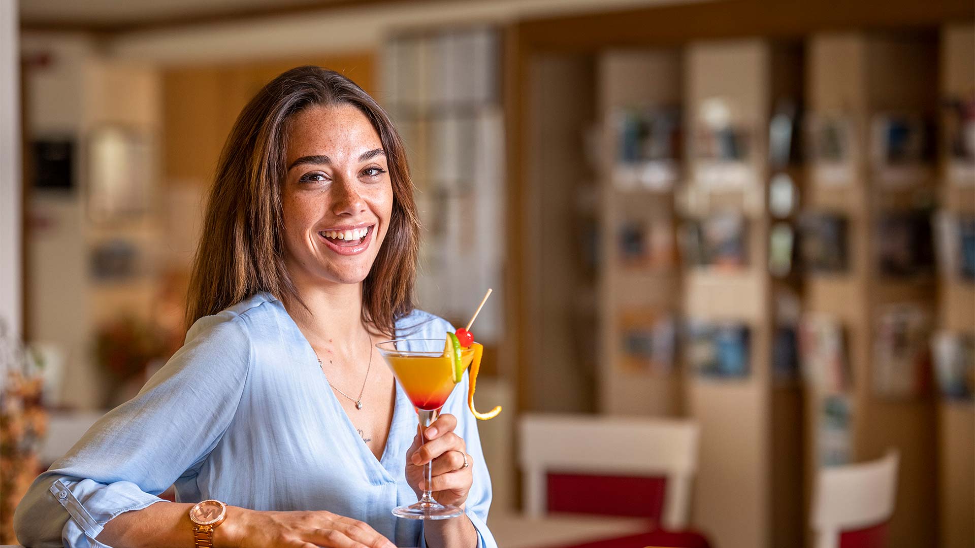 Trinken Sie genüsslich einen Cappuccino an unserer gut ausgestatteten Hotelbar, probieren Sie einen unserer leckeren Cocktails oder einen Aperitiv vor dem Abendessen.